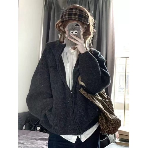 秋冬向け女子用アメリカンヴィンテージ風 レラックスフィットのニットアウター
