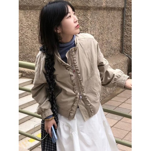 秋冬向け、小柄な女性向け日系ヴィンテージ風の少女感溢れる ジップ付きワークジャケット